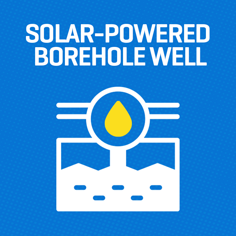 Solar powered boreholes are life-changing. Using electricity powered by the sun, water is pumped from deep within the ground to provide clean, safe drinking water for communities in need of access to this basic human life-source. In fact, just 4 boreholes can provide enough water for a staggering 4,000 people. This simple but effective solution saves lives.
