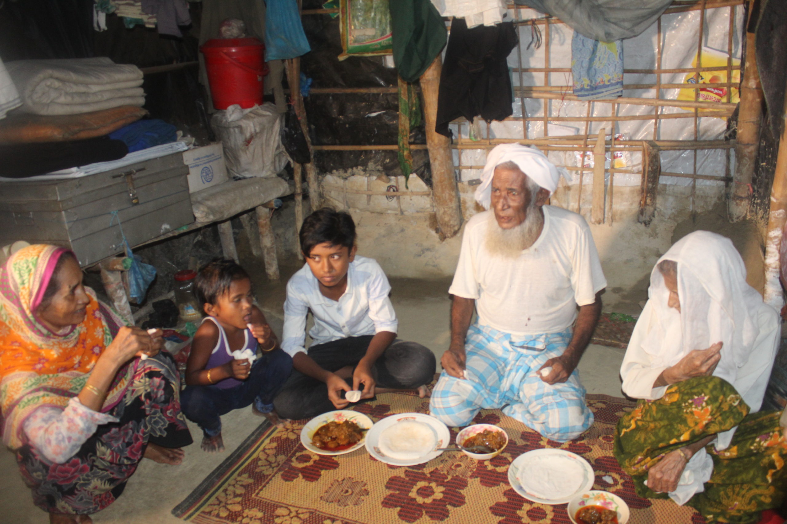 “Over the last two years, the idea of eating meat is like a dream. When we were in Myanmar we were able to eat meat a few times a week, but in the last two years we have only been able to have it three or four times in total. This affects our health badly. We can’t purchase enough food to live sufficiently, but we depend on Allah. I am now old and need medicine to survive, but I worry about my grandchildren because there is no place for them to get an education.